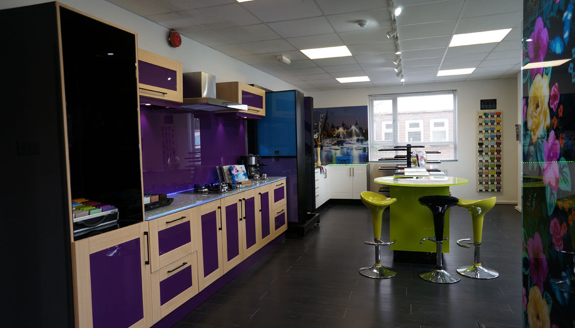 Our helpful experienced staff will advise you, and ensure that you make the right choice. We have a full range of glass splashbacks, glass worktops and digitally printed glass on display.